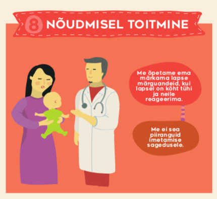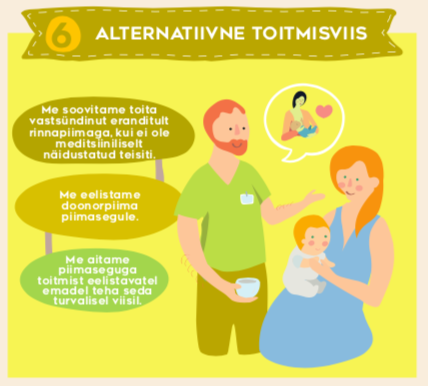 • teab BFHI põhimõtteid ja „Kümmet sammu eduka imetamiseni“;