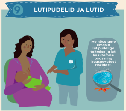 9. Nõustage emasid lutipudelite ja luttide kasutamisega seotud riskide osas.