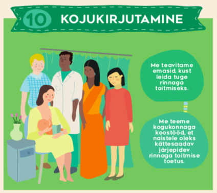 📘Naistekliinikus viibimise ajal informeeritakse emasid imetamisnõustamise korraldamisest viisil, mis tagab tervishoiutöötajate ja kogukonnas tegutsevate imetamise tugigruppide toetuse kättesaadavuse: naistekliiniku veebinõustamine, imetamise vestlusring, imetamisnõustajate vastuvõtud ja sünnitusjärgne koduvisiit.